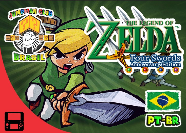 Download da tradução do jogo The Legend of Zelda: Four Swords Anniversary Edition para Nintendo DSI e Nintendo 3DS, feito pela equipe JumpmanClub Brasil.